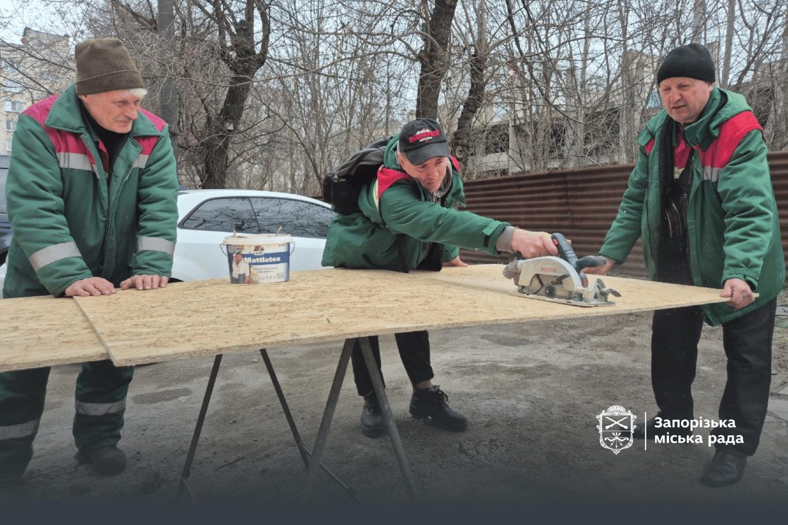 Станом на 12:00 25 березня у КП «Запоріжремсервіс» виконані роботи по «закриттю» вікон у 7 будинках приватного сектору. Використано 13 листів OSB, «закрито» 18 вікон. Також «закрито» вікна у 15 багатоквартирних житлових будинках. Використано 349 листів OSB, закрито 502 вікна.