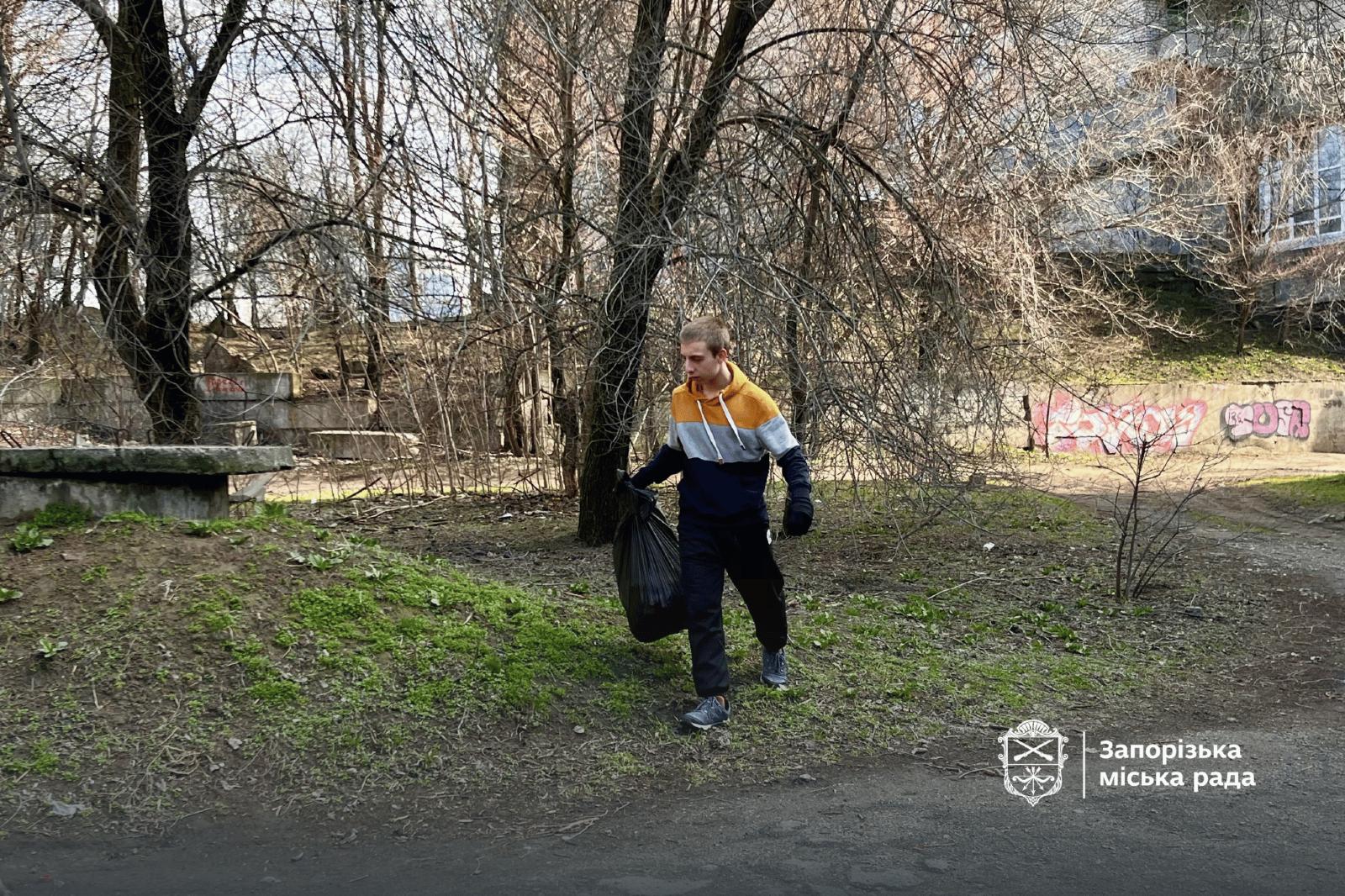 Одна з них — зелена зона між будинками на бульварі Центральному. До прибирання долучилися студенти Запорізького металургійного коледжу, а також близько 30 представників релокованої до Запоріжжя Білозерської громади, яка нині перебуває під тимчасовою окупацією. Вивезення сміття забезпечили комунальні служби та ТОВ «Вельтум-Запоріжжя».
