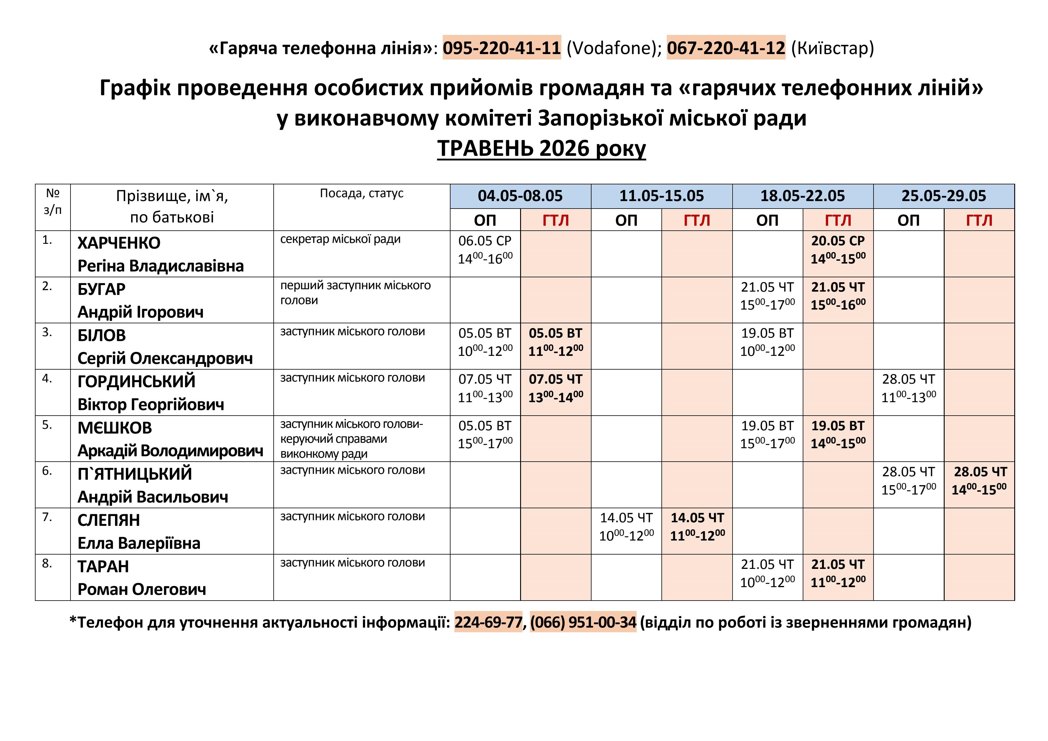 Графік «гарячих» телефонних ліній